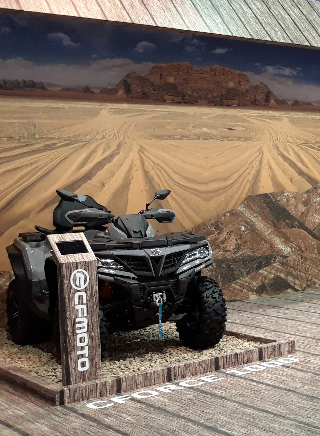 CFORCE 1000 Overland Двигун: 963 см³ 90 к.с. NEW Електропідсилювач керма (EPS), електрична лебідка 3500 lbs, литі диски 14″, шини 27″ STAG, багатофункціональна приладова TouchScreen панель MMI 8″+Apple CarPlay, дзеркала заднього виду, сидіння пасажира зі спинкою, передня