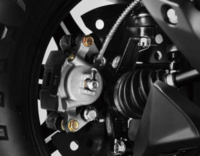 Підвіска виготовлена з міцних алюмінієвих труб і має довшу довжину ходу. Передня незалежна підвіска на здвоєних А-подібних важелях і задня підвіска на поздовжніх важелях допоможуть вам «м’яко» подолати всі нерівності на шляху.