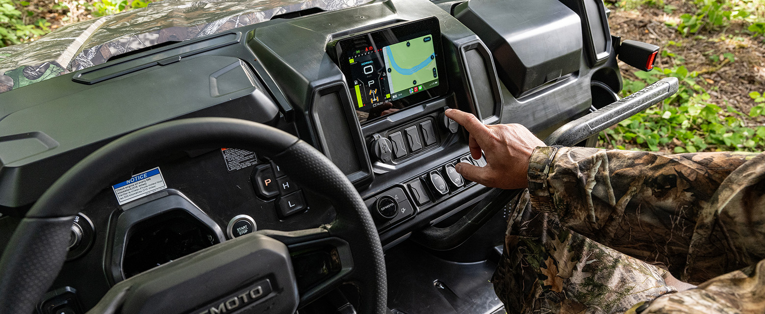 Мотовсюдихід може похвалитися високотехнологічною інтегрованою системою CarPlay з оновленням ПО через Інтернет. Вона являє собою зручний цифровий інтерфейс із повноекранним режимом для перегляду експлуатаційних даних. Поліекранний режим роботи дисплея дозволяє ефективно поєднувати відображення даних діагностики транспортного засобу з використанням застосунків, віддаючи перевагу безпечному та зручному водінню.